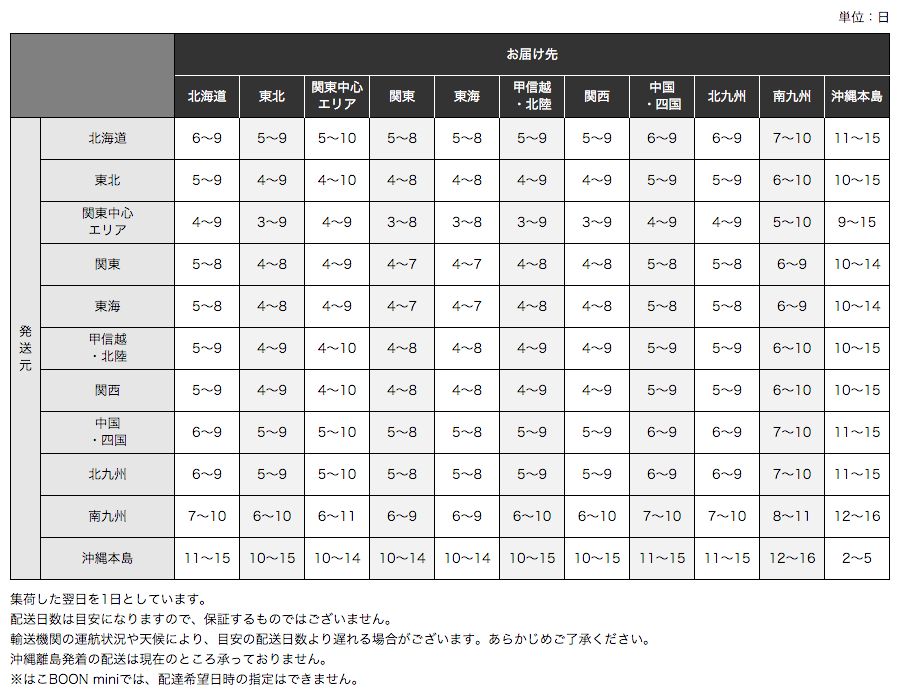 ❏発送した翌日が1日目なので最短で出荷してから6日間 最長17日間