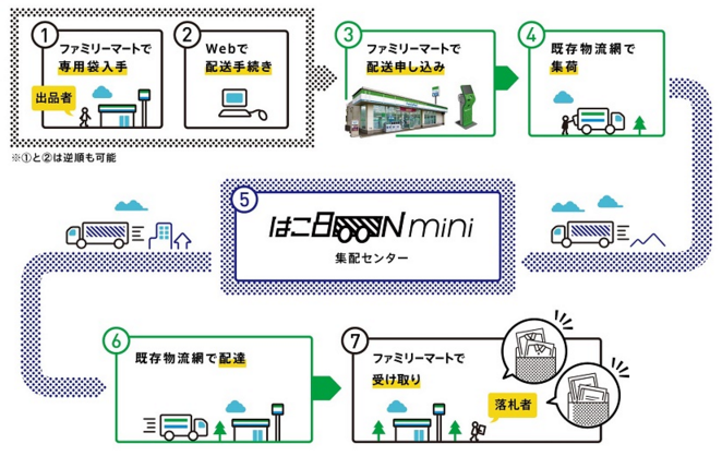 3)専用袋に荷物を入れ、ファミリーマートへ持ち込む、