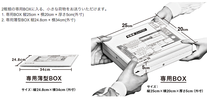 2種類の専用BOXに入る、小さな荷物をお送りいただけます。