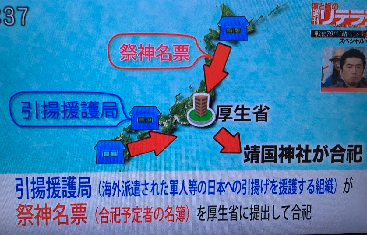 厚生省が引き上げ援護局のリストをもとに、祭神名票をつくり靖国神社へ提供する。戦死者リストだ。