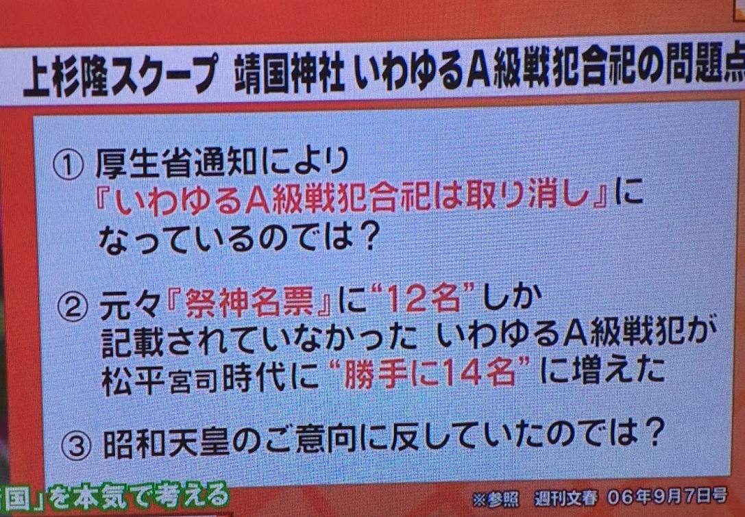 これであれば、A級と呼ばれた14名は刑死だから靖国では祀れないとなる。