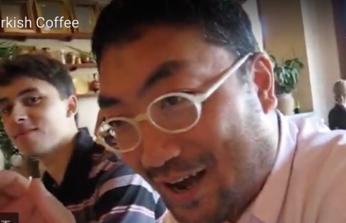 スティーブ・チェンとチャド・ハリーがトルキッシュコーヒーを飲んでいる。