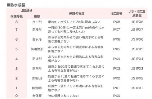 JIS防水保護等級 IPX5/8相当で水深2mの防水性能を実現。